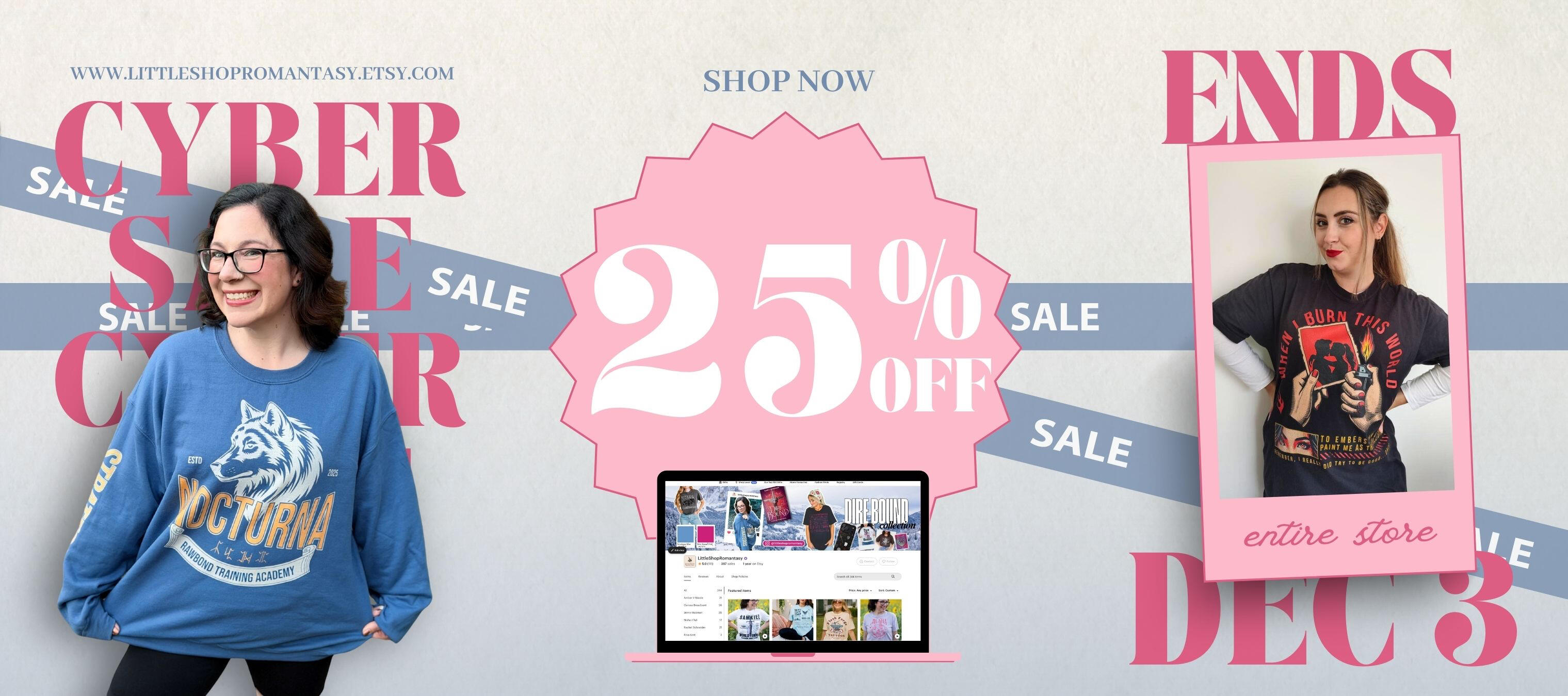 Officially licensed merchandise collection for Dire Bound by Sable Sorensen. There is a variety of items available including sweatshirts, knit sweaters, tshirts and stickers.10% of the profits from every sale will be donated to Safe Horizon, a nonprofit victim assistance, advocacy and violence prevention organization.